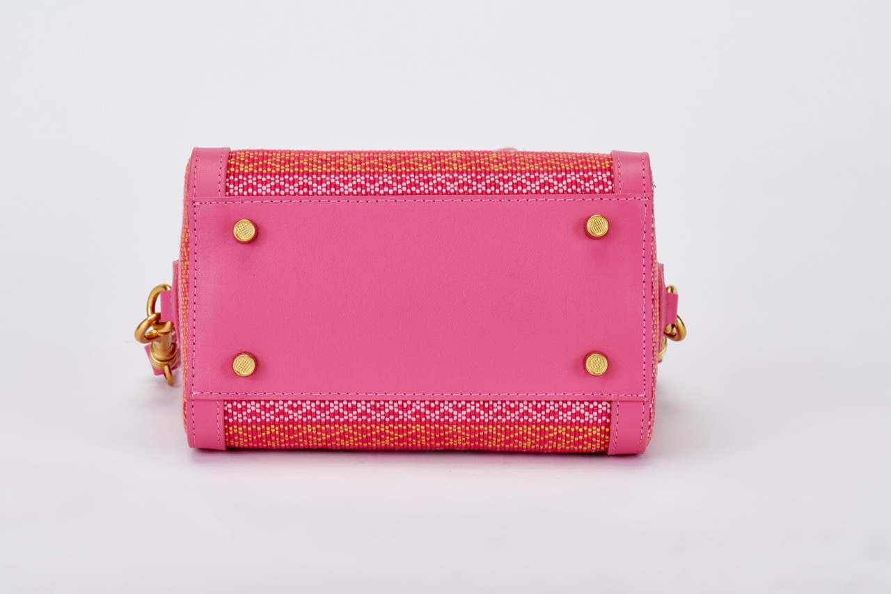 (面料:黎锦手工植物染 100% 全棉  皮料:头层牛皮  里布:100% 纯棉帆布)