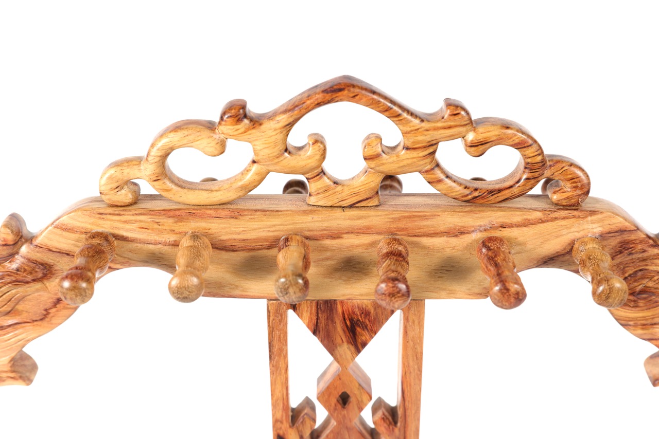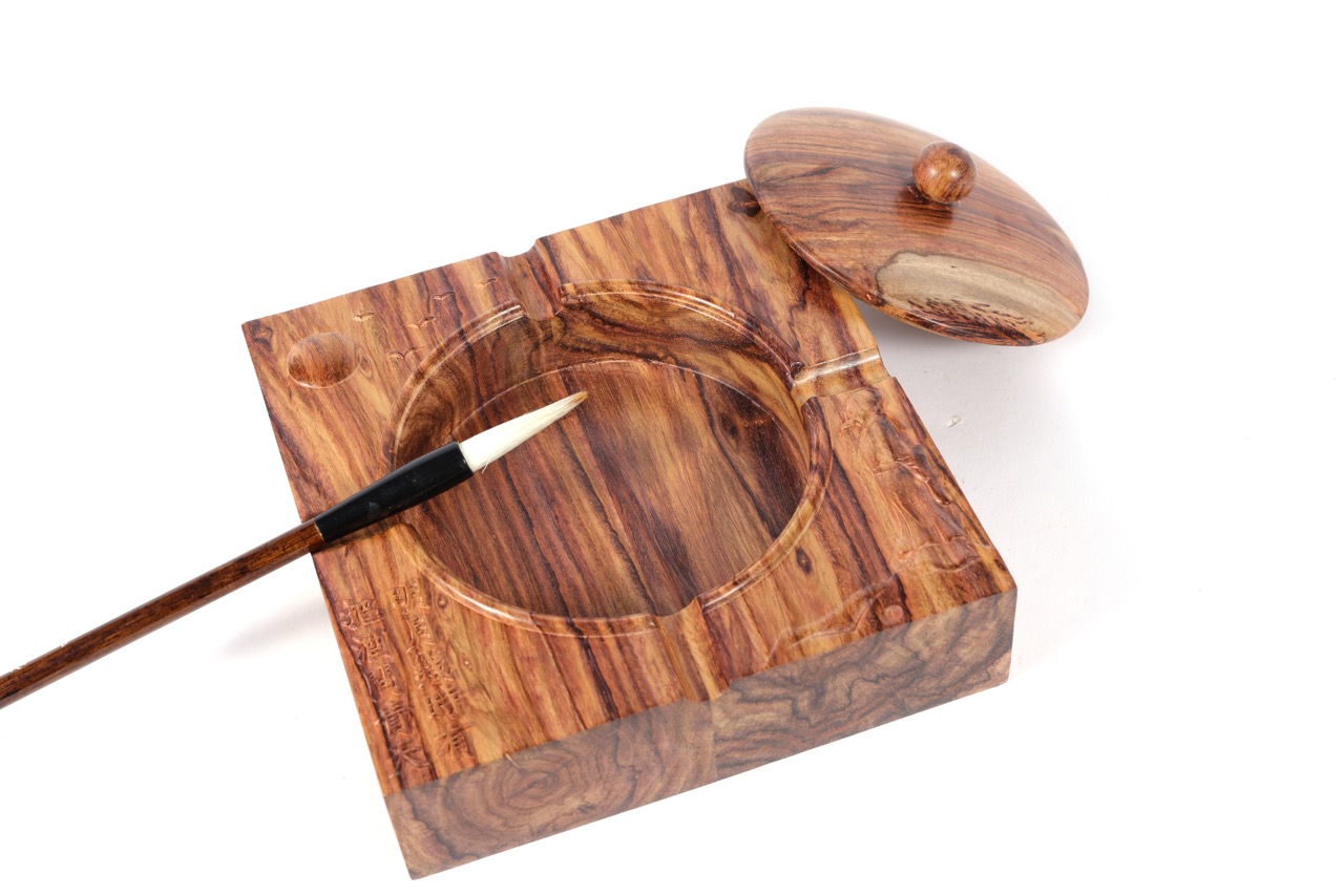 晾晒存放:存放环境需保持温湿度适宜(温度 15-25℃,湿度 40%-60%),避免阳光直射(会导致木质干裂、色泽暗沉),远离空调出风口、暖气旁等干燥区域;长期存放时,在收纳盒内放置天然防虫剂(如樟木片,勿直接接触黄花梨表面),并定期(1-2 个月)取出用软布轻擦,保持木质透气;不同文房用品间需用软绒布分隔,避免碰撞磨损木纹。
