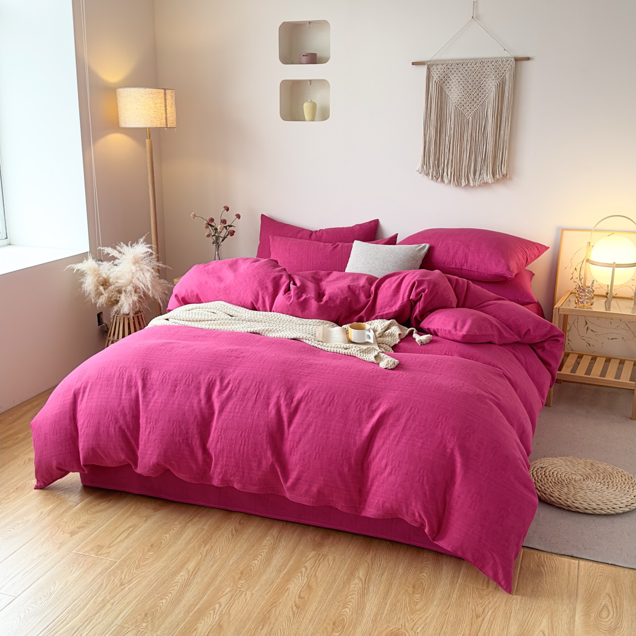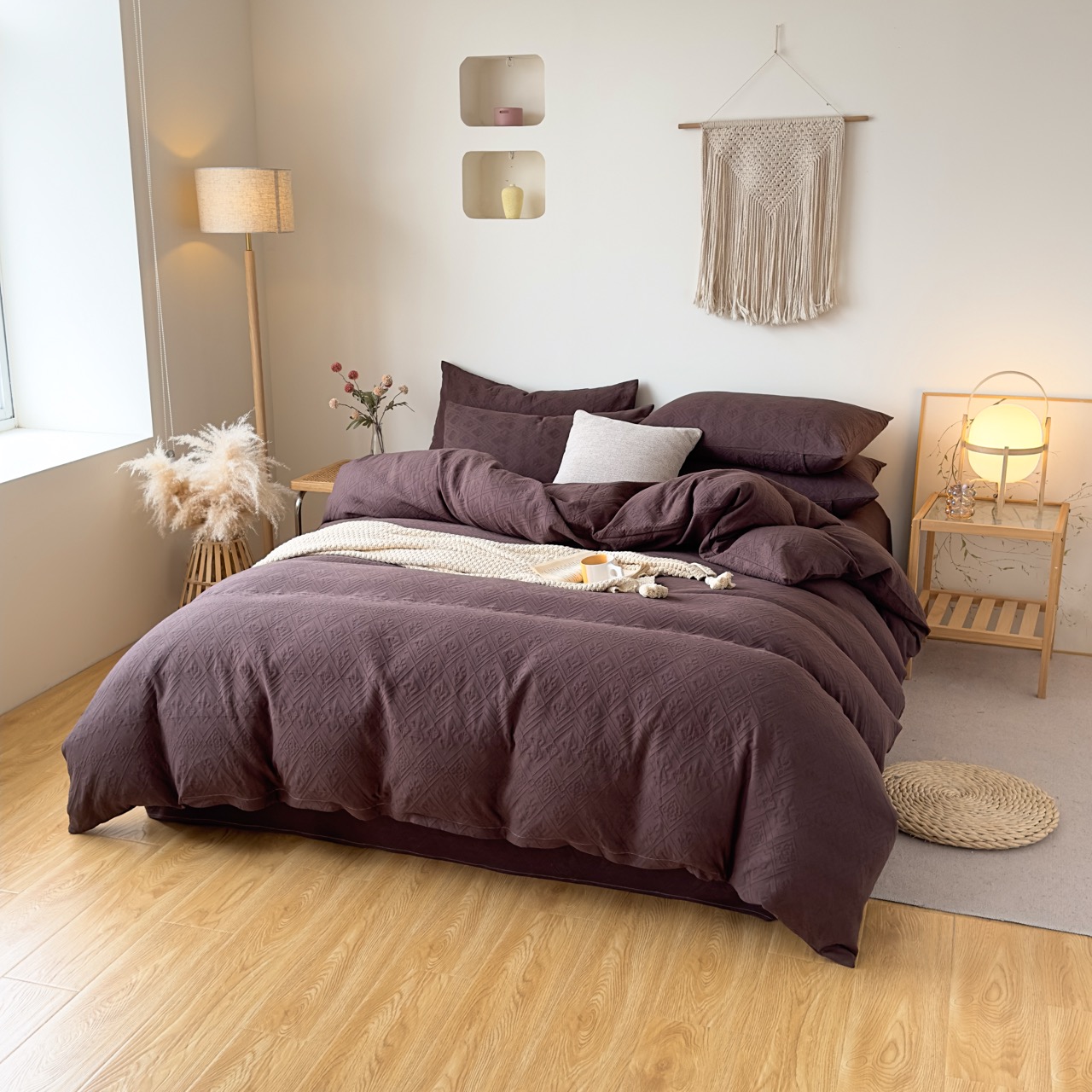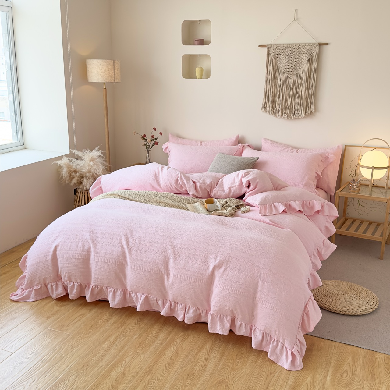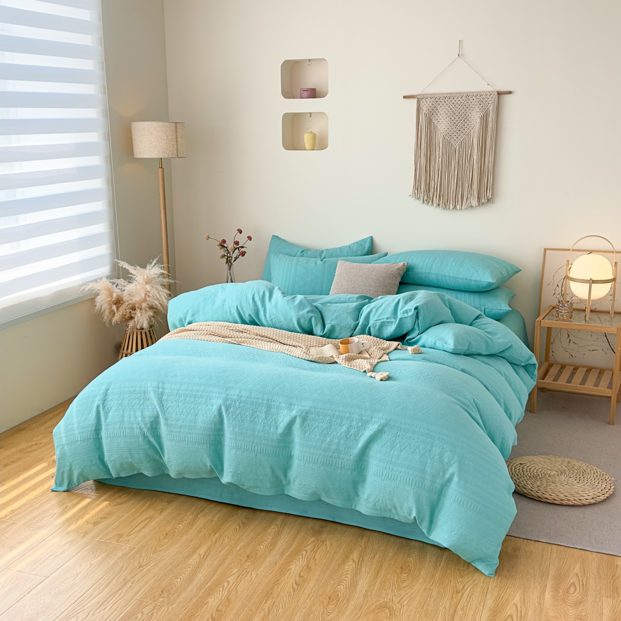 特别注意:纯棉床品易皱,洗后可轻微抻平再晾晒(减少后续熨烫需求),若需熨烫,待面料半干时用中温熨烫(温度 110-130℃,避免高温烫坏面料);无需频繁使用柔顺剂(会堵塞纯棉纤维孔隙,降低吸汗透气性);若床品有刺绣、蕾丝装饰,洗时需翻面并放入洗衣袋(防止装饰勾坏、脱落)。