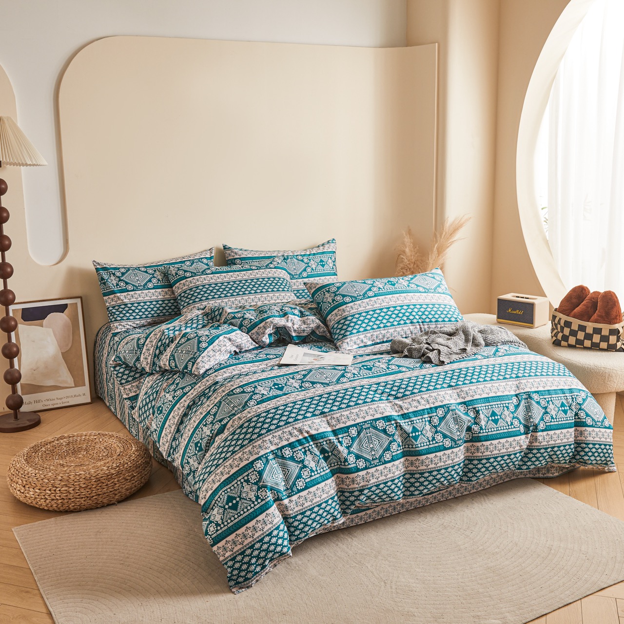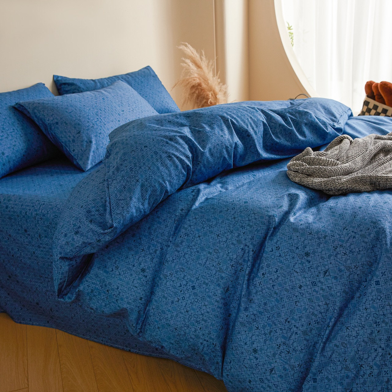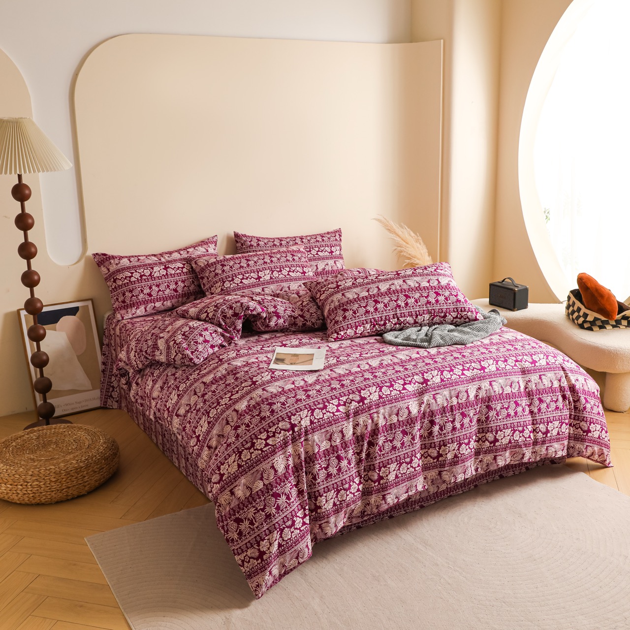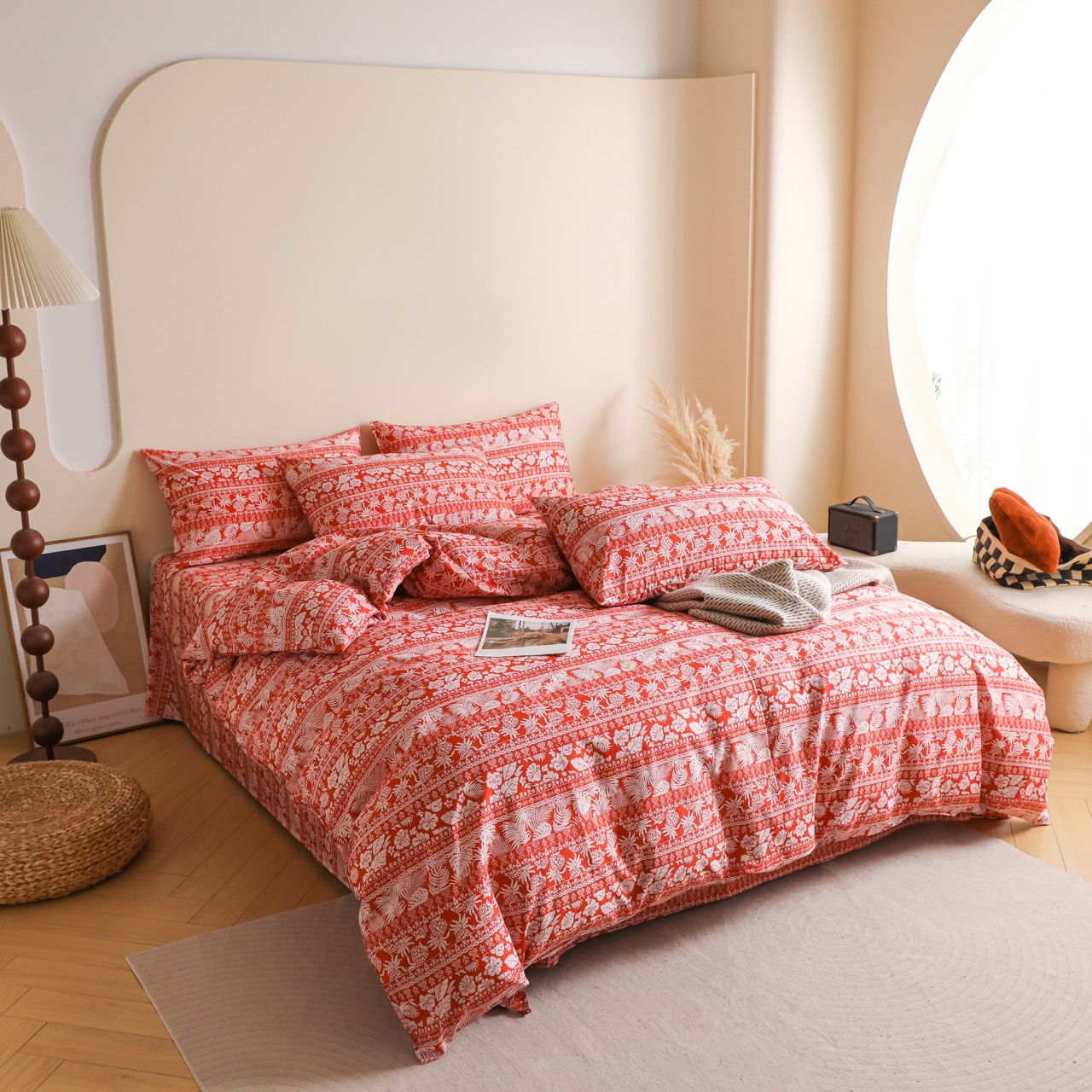 1. 特别注意:纯棉床品易皱,洗后可轻微抻平再晾晒(减少后续熨烫需求),若需熨烫,待面料半干时用中温熨烫(温度 110-130℃,避免高温烫坏面料);无需频繁使用柔顺剂(会堵塞纯棉纤维孔隙,降低吸汗透气性);若床品有刺绣、蕾丝装饰,洗时需翻面并放入洗衣袋(防止装饰勾坏、脱落)。