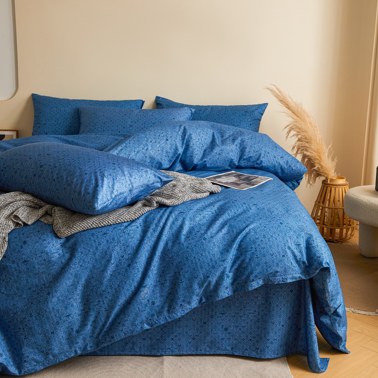 1. 日常清洁:首次使用前,用 30℃冷水单独洗涤(去除面料浮毛与出厂浆感,减少后续缩水);日常洗涤水温控制在 30-40℃,选用中性洗衣液(避免漂白剂、强碱洗涤剂,防止面料发黄、纤维受损);洗前将床品翻面,深浅色分开洗(防止染色),勿与牛仔裤、外套等粗糙衣物混洗(避免勾丝、磨损面料);轻柔机洗或手洗,忌强力搅拌(减少面料起皱与变形)。